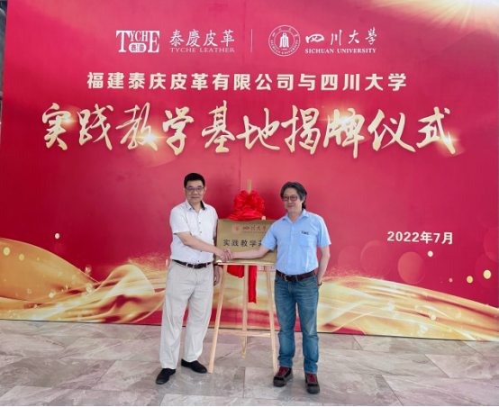 2022年7月18日至19日,四川大学轻化工程专业实践教学基地揭牌仪式在福建省漳浦县赤湖皮革工业园隆重举行,js金沙3983总站院长彭必雨教授、生物质与皮革工程系副系主任程海明教授、张金伟博士和三家企业领导以及2019级“卓越工程师班”学生出席了仪式。在揭牌仪式上,彭必雨院长代表四川大学分别与福建泰庆皮革有限公司、漳洲香洲皮革有限公司和漳浦致远皮革有限公司共同签订了校级实践教学基地建设协议书,为企业专家颁发了“卓越工程师计划”企业导师聘书,并与三家企业领导共同为校级实践教学基地揭牌。
